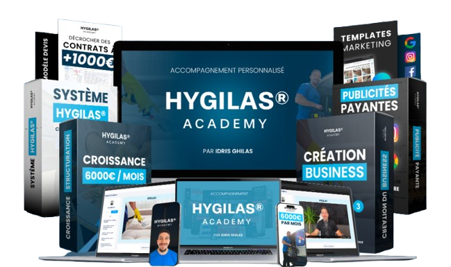 La hHygilas academy c’est un programme d’accompagnement et de formation pour vous accompagner dans la mise en place et la réussite de votre projet dans le nettoyage.