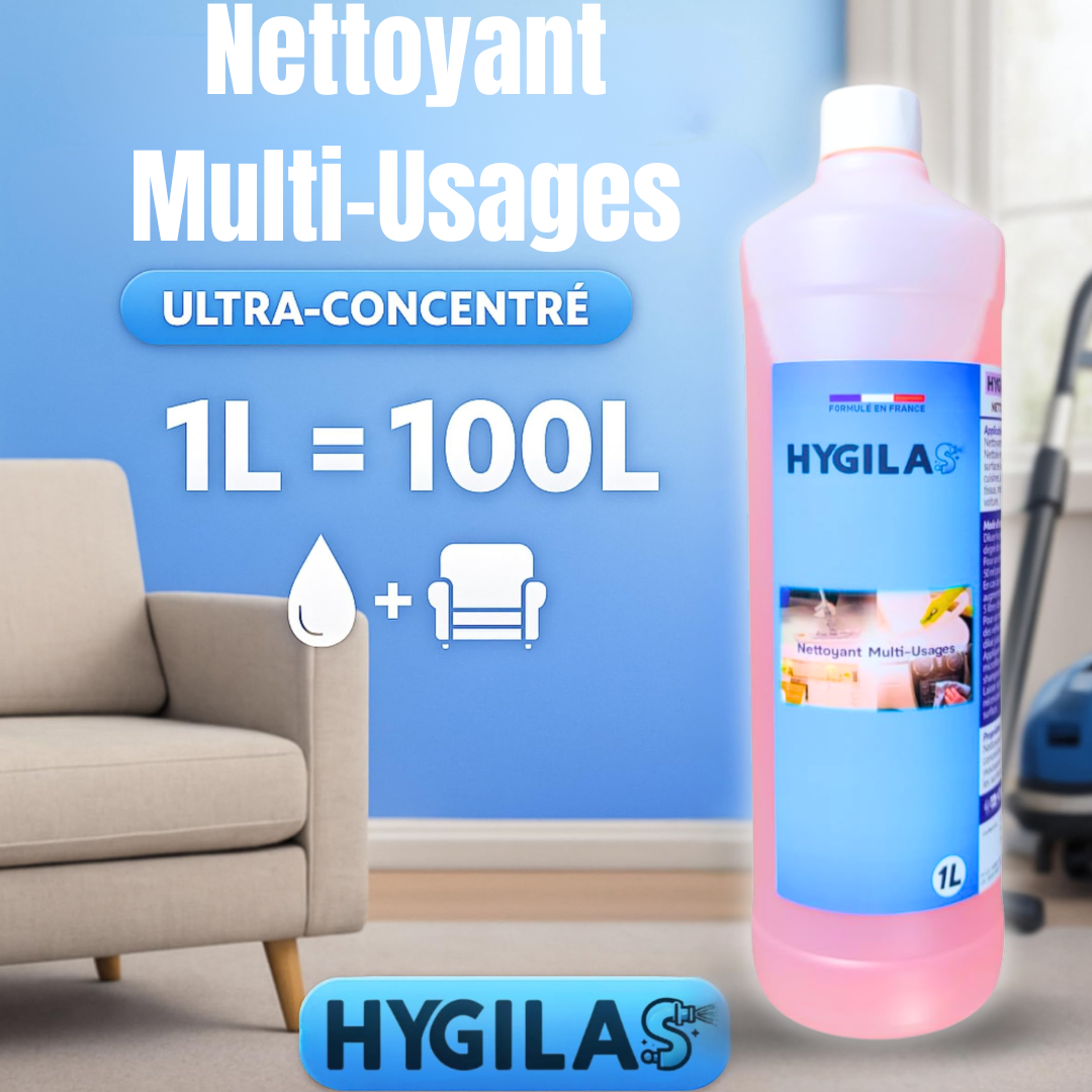 Le nettoyant multi-usage HYGILAS s’adapte à tous les environnements et toutes les surfaces. Puissant et polyvalent, il remplace à lui seul plusieurs produits de nettoyage.