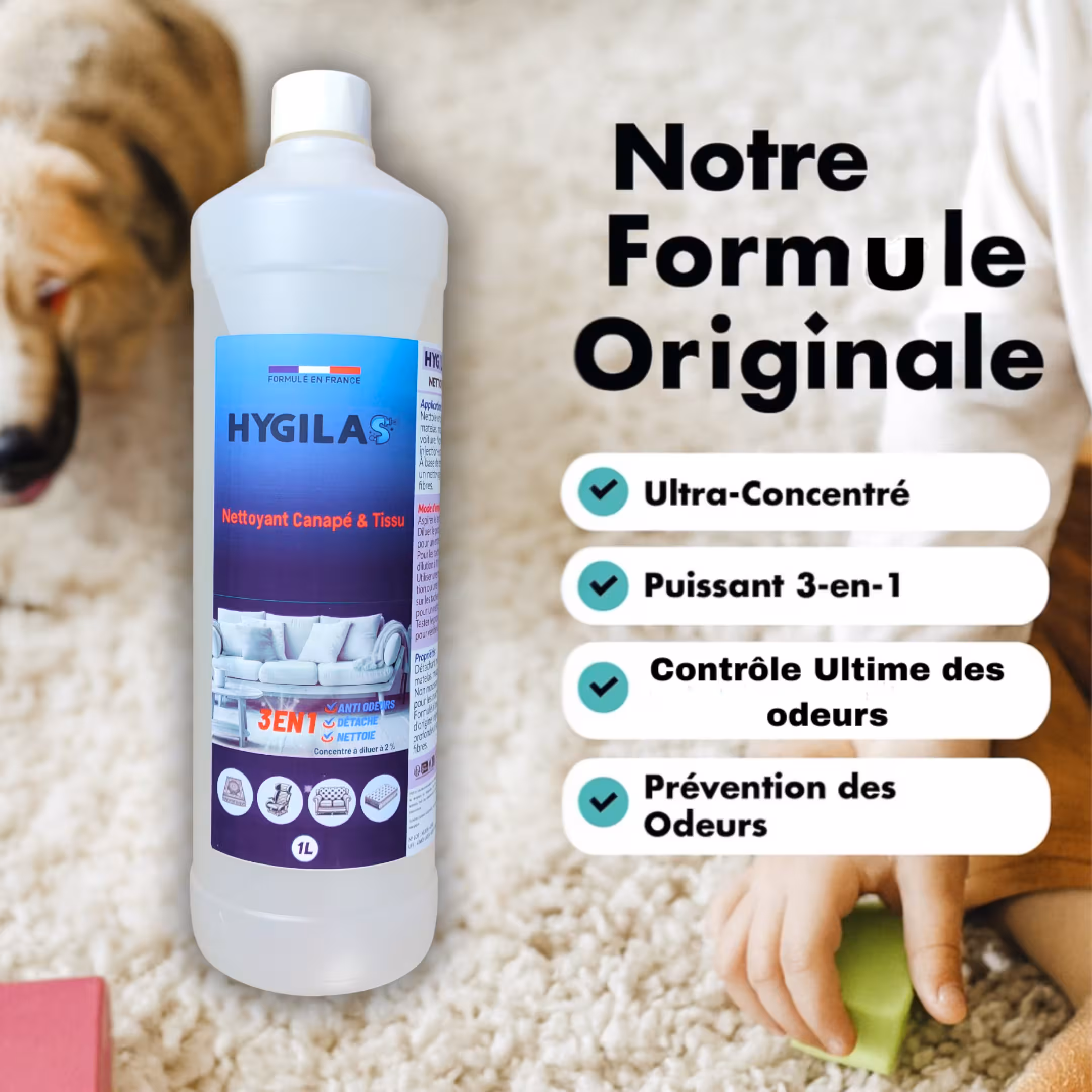 Notre nettoyant textile a été conçu pour offrir une performance professionnelle sur tous les tissus : canapés, tapis, matelas, sièges auto et textiles délicats. Sa formule concentrée agit en profondeur pour décoller les saletés, raviver les fibres et éliminer les mauvaises odeurs sans abîmer les matériaux.